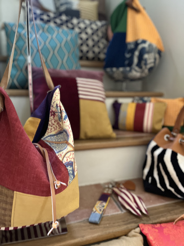 un choix que je défends et assume au quotidien: Coupons précieux, Chutes de production, emballages…toutes les ressources qui entrent dans l’ atelier sont triées, classées, réutilisées. Rien ne se perd, les plus petits morceaux trouvent leur place, jusqu’à finir en flocon de garnissage.